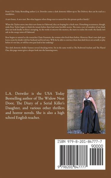 From USA Today Bestselling author L.A. Detwiler comes a dark domestic follow-up to The Delivery that can be read as a standalone. A new house. A new start. But what happens when things start to unravel for this picture-perfect family? When the Taylors move into their new home in Oakwood, they are hoping for a fresh start. Disturbing occurrences, though, make Rose Taylor begin to think the tenant before them had some horrible secrets. The town, wary of outsiders of any kind, does not look kindly on Rose's snooping. As she works to uncover the mystery, she starts to realize the truth: the family isn't safe in the creepy town of Oakwood. Rose begins to unravel as she researches Claire Fountain, the woman who lived there before. However, Rose's own dark past leaves room for doubt with her husband and loved ones. Will she be able to convince them that dark forces are actually at play before it's too late, or will her own past lead to her undoing? This dark domestic thriller features several shocking twists. Set in the same world as The Redwood Asylum and The Flayed One, this page-turner gives a deeper look into the haunting town.