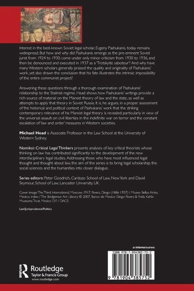 A thorough examination of Pashukanis' writings, this book is a significant contribution to a proper assessment of Pashukanis' work, the value of his theoretical legacy and the contemporary relevance of Marxist legal theory. Interest in the best-known Soviet legal scholar, Evgeny Pashukanis, remains widespread and his work retains considerable relevance. His writings provide a rich source of material on the Marxist theory of law and the state, as well as the attempts to apply that doctrine in Soviet Russia. In this book, Michael Head considers Pashukanis' work both within its historical context and in relation to contemporary legal theory, answering a range of questions including: How and why did Pashukanis emerge as the pre-eminent Soviet jurist from 1924 to 1930? Why did he come under only minor criticism from 1930 to 1936 and then be denounced and executed in 1937 as a 'Trotskyite saboteur'? Why have many Western scholars generally praised the quality and originality of Pashukanis' work, yet also drawn the conclusion that his fate illustrates the intrinsic impossibility of the entire communist project? Serving as an introduction to Pashukanis and Marxist legal theory and a timely contribution in light of the universal assault on civil liberties in the indefinite 'War on Terror' and the constant escalation of 'law and order' measures in Western societies, this volume is an invaluable resource for those interested in jurisprudence and critical thought.