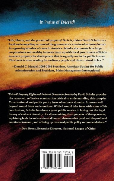 Evicted! is a practical and critical look at the vulnerability of Americans' property rights to eminent domain abuse since the Supreme Court's 2005 Kelo decision. The 2005 Supreme Court decision Kelo v. City of New London, which upheld the taking of an individual's home by local government for the sake of private development, unleashed a firestorm of controversy. The backlash against eminent domain cuts across partisan, ideological, and racial lines, with 4 out of 5 Americans opposing Kelo. Critics of Kelo claim that it represents a radical departure in the law, putting every homeowner in jeopardy of dispossession by government at the service of corporate interests. But are property rights and eminent domain truly in mortal conflict? Written for general readers, property owners, and local government officials seeking to understand the implications of Kelo for eminent domain and property law, Evicted! cuts through all the hype and hysteria surrounding Kelo and argues that the alleged wave of eminent domain abuse is mostly a myth. Evicted! describes what property rights are, why the law protects them, and how eminent domain really works. Schultz shows that Kelo did not make new law but only broadened Supreme Court precedents, and he refutes claims that Kelo has opened the way to widespread eminent domain abuse. Nevertheless, the author identifies certain legislative changes that are needed at the local, state, and national levels to better protect individual property owners when corporate thugs and corrupt government officials occasionally gang up against them.