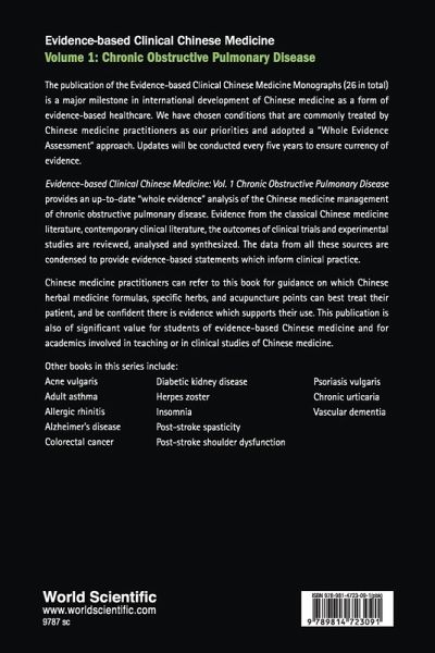 Evidence-based Clinical Chinese Medicine: Vol. 1 Chronic Obstructive Pulmonary Disease provides a "whole evidence" analysis of the Chinese medicine management of chronic obstructive pulmonary disease (COPD). Evidence from the classical Chinese medicine literature, contemporary clinical literature, and the outcomes of clinical trials and experimental studies are reviewed, analysed and synthesised. The data from all these sources are condensed to provide evidence-based statements which will inform clinical practice and guide future research. This book has been designed to be an easy reference at the point of care. During a patient consultation, Chinese medicine practitioners can refer to this book for guidance on which Chinese herbal medicine formulas, specific herbs, or acupuncture points, can best treat their patient, and be confident there is evidence which supports its use. Currently, Chinese medicine practitioners who develop a special interest in a particular health condition such as COPD have to consult a variety of sources to further their knowledge. Typically, they use the contemporary clinical literature to understand the theory, aetiology, pathogenesis and obtain expert opinions on the Chinese medicine management of COPD. They search the electronic literature to identify systematic reviews of clinical trials, if any exists, to obtain assessments of the current state of the clinical evidence for particular interventions. If they have the skills and resources, they may search the classical Chinese medicine literature for an historical perspective on treatments that have stood the test of time. This book provides all of this information for practitioners in one handy, easy to use reference. This allows practitioners to focus on their job of providing high quality healthcare, with the knowledge it is based on the best available evidence.