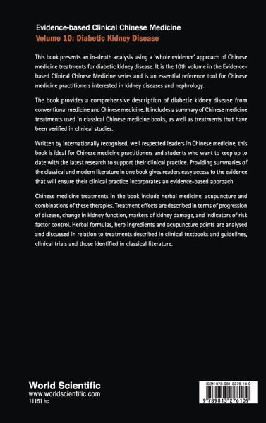 This book presents an in-depth analysis using a 'whole evidence' approach of Chinese medicine treatments for diabetic kidney disease. It is the 10th volume in the Evidence-based Clinical Chinese Medicine series and is an essential reference tool for Chinese medicine practitioners interested in kidney diseases and nephrology. The book provides a comprehensive description of diabetic kidney disease from conventional medicine and Chinese medicine. It includes a summary of Chinese medicine treatments used in classical Chinese medicine books, as well as treatments that have been verified in clinical studies. Written by internationally recognized, well respected leaders in Chinese medicine, this book is ideal for Chinese medicine practitioners and students who want to keep up to date with the latest research to support their clinical practice. Providing summaries of the classical and modern literature in one book gives readers easy access to the evidence that will ensure their clinical practice incorporates an evidence-based approach. Chinese medicine treatments in the book include herbal medicine, acupuncture and combinations of these therapies. Treatment effects are described in terms of progression of disease, change in kidney function, markers of kidney damage, and indicators of risk factor control. Herbal formulas, herb ingredients and acupuncture points are analysed and discussed in relation to treatments described in clinical textbooks and guidelines, clinical trials and those identified in classical literature.