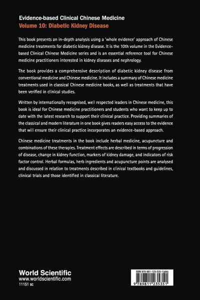 This book presents an in-depth analysis using a 'whole evidence' approach of Chinese medicine treatments for diabetic kidney disease. It is the 10th volume in the Evidence-based Clinical Chinese Medicine series and is an essential reference tool for Chinese medicine practitioners interested in kidney diseases and nephrology. The book provides a comprehensive description of diabetic kidney disease from conventional medicine and Chinese medicine. It includes a summary of Chinese medicine treatments used in classical Chinese medicine books, as well as treatments that have been verified in clinical studies. Written by internationally recognized, well respected leaders in Chinese medicine, this book is ideal for Chinese medicine practitioners and students who want to keep up to date with the latest research to support their clinical practice. Providing summaries of the classical and modern literature in one book gives readers easy access to the evidence that will ensure their clinical practice incorporates an evidence-based approach. Chinese medicine treatments in the book include herbal medicine, acupuncture and combinations of these therapies. Treatment effects are described in terms of progression of disease, change in kidney function, markers of kidney damage, and indicators of risk factor control. Herbal formulas, herb ingredients and acupuncture points are analysed and discussed in relation to treatments described in clinical textbooks and guidelines, clinical trials and those identified in classical literature.