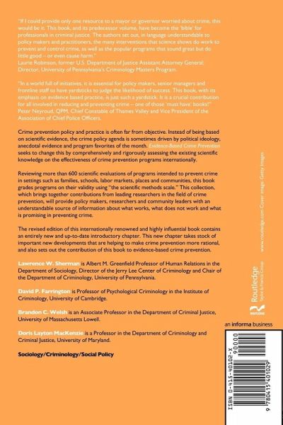 Reviewing more than 600 scientific evaluations of programs intended to prevent crime, this book is an understandable source of information about what works, what does not work and what is promising in preventing crime.