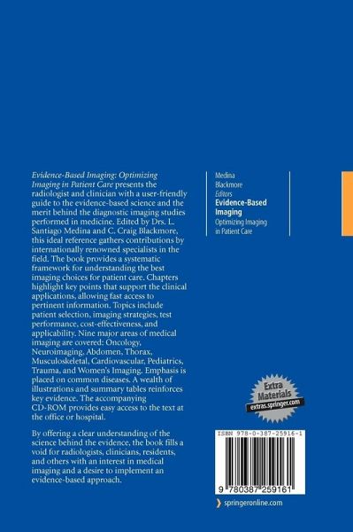 "Evidence-based Imaging presents the radiologist and clinician with a user friendly guide to evidence-based science and the merit behind the diagnostic imaging studies performed in medicine.