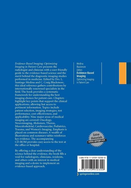 "Evidence-based Imaging presents the radiologist and clinician with a user friendly guide to evidence-based science and the merit behind the diagnostic imaging studies performed in medicine.