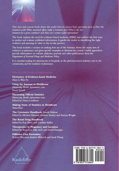 This is a basic introduction to evidence-based medicine describing the need for EMB and the tools used. The book guides the reader towards finding the right evidence and how to assess its value and quality, including a section on the Internet and how to make best use of it.