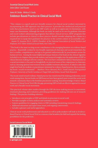 "Evidence-Based Practice in Clinical Social Work is the most exciting recent contribution to the emerging literature on evidence based practice. Beautifully written by two broadly experienced clinicians and social researchers, the text is erudite, comprehensive, and apt to be greeted enthusiastically by practitioners across the human services. Among the many helpful and unique features of the book are the clinical vignettes included in six chapters that provide realistic and nuanced insights into the application of EBP to clinical decision making in diverse contexts. Few texts have considered evidence-based practice as a social movement or focused so thoughtfully on practical issues of key importance to clinicians, such as choosing optimal interventions from available treatment alternatives. If asked to select the single best book for students or practitioners interested in evidence-based practice, this is certainly the book I would recommend." - Matthew Owen Howard, Ph.D., Frank Daniels Distinguished Professor, University of North Carolina at Chapel Hill and Editor, Social Work Research "Although a number of recent books have addressed the evolving field of evidence-based practice in social work, Jim Drisko and Melissa Grady's Evidence-Based Practice in Clinial Social Work is the first detailed work designed explicitly for use by social work clinicians. Always careful to anchor their discussion of the EBP process with real-world clinical illustrations, Drisko and Grady here offer social workers a comprehensive and thorough, yet accessible, guide for using an EBP approach with the kind of clients seen daily in clinical social work settings. Among the book's many strengths are the authors' careful and balanced assessment of the limitations and challenges of an EBP approach, as well as their caution that teaching the process of evidence-based practice should neither be misconstrued as a substitute for a good clinical social work education, nor seen as a roadmap for how to conduct treatment. This timely and well-written volume is highly recommended for advanced graduate students as well as for practicing clinicians." - Jerrold R. Brandell, Dstinguished Professor, Wayne State University