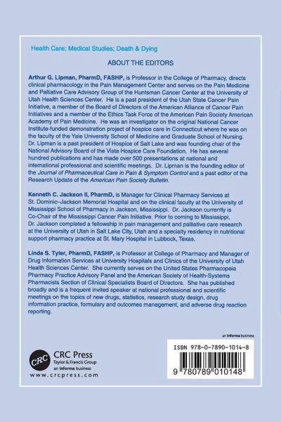 Arthur G. Lipman, PharmD, FASHP, is Professor in the College of Pharmacy, directs clinical pharmacology in the Pain Management Center and serves on the Pain Medicine and Palliative Care Advisory Group of the Huntsman Cancer Center at the University of Utah Health Sciences Center. He is a past president of the Utah State Cancer Pain Initiative, a member of the Board of Directors of the American Alliance of Cancer Pain Initiatives and a member of the Ethics Task Force of the American Pain Society American Academy of Pain Medicine. Kenneth C. Jackson II, PharmD, is Manager for Clinical Pharmacy Services at St. Dominic-Jackson Memorial Hospital and on the clinical faculty at the University of Mississippi School of Pharmacy in Jackson, Mississippi. Dr. Jackson currently is Co-Chair of the Mississippi Cancer Pain Initiative. Linda S. Tyler, PharmD, FASHP, is Professor at College of Pharmacy and Manager of Drug Information Services at University Hospitals and Clinics of the University of Utah Health Sciences Center. She currently serves on the United States Pharmacopeia Pharmacy Practice Advisory Panel and the American Society of Health-Systems Pharmacists Section of Clinical Specialists Board of Directors