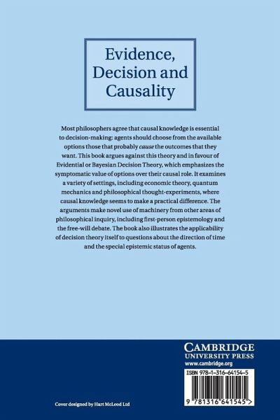Most philosophers agree that causal knowledge is essential to decision-making: agents should choose from the available options those that probably cause the outcomes that they want. This book argues against this theory and in favour of evidential or Bayesian decision theory, which emphasises the symptomatic value of options over their causal role. It examines a variety of settings, including economic theory, quantum mechanics and philosophical thought-experiments, where causal knowledge seems to make a practical difference. The arguments make novel use of machinery from other areas of philosophical inquiry, including first-person epistemology and the free will debate. The book also illustrates the applicability of decision theory itself to questions about the direction of time and the special epistemic status of agents.