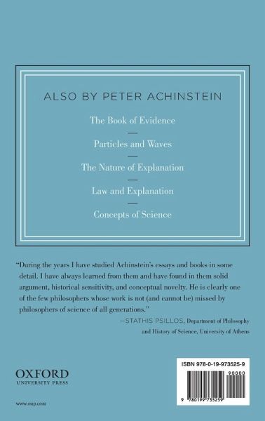 The essays in this volume address three fundamental questions in the philosophy of science: What is required for some fact to be evidence for a scientific hypothesis? What does it mean to say that a scientist or a theory explains a phenomenon? Should scientific theories that postulate <"unobservable>" entities such as electrons be construed realistically as aiming to correctly describe a world underlying what is directly observable, or should such theories be understood as aiming to correctly describe only the observable world? Distinguished philosopher of science Peter Achinstein provides answers to each of these questions in essays written over a period of more than 40 years. The present volume brings together his important previously published essays, allowing the reader to confront some of the most basic and challenging issues in the philosophy of science, and to consider Achinstein's many influential contributions to the solution of these issues. He presents a theory of evidence that relates this concept to probability and explanation; a theory of explanation that relates this concept to an explaining act as well as to the different ways in which explanations are to be evaluated; and an empirical defense of scientific realism that invokes both the concept of evidence and that of explanation.