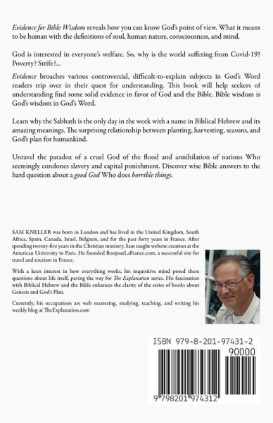 God's Word, Biggest Dilemma & Challenge of Your Life. Why? Believe it or not, the basis of your thinking and convictions is at stake. The opening statement of God's Word poses a preposterous predicament. "In the beginning God created the heaven and the earth" Is it foolish or not? John, the Apostle, links this statement directly to Jesus Christ, "In the beginning was the Word, and the Word was with God, and the Word was God. The same was in the beginning with God. All things were made by him;" (John 1:1-4). Can you believe in Christ and not the Creation? How do we resolve this issue? I never intended to write Evidence for Bible Wisdom. It started in September 2020, during the pandemic, with a blog post about Covid-19 and Quarantine. The reason was the lack of literature referring to God's Word about this subject. I immediately began writing on various difficult-to-explain subjects in the Bible readers trip over in their quest for understanding. This book is a beginning effort to help seekers of understanding find some solid evidence in favor of God and the Bible. Bible wisdom is God's wisdom in God's Word. Most readers consider humans to be authors of the Bible. Consider this. If God is an All-Powerful Being, then He can inspire His Words, preserve and transmit those same Words down through time to reach us today. Most people have difficulty with that statement, that's the reason I wrote this book. It's not about religion, doctrine, Church orientation, or specific beliefs you must have to be in some faith. It is evidence there is wisdom in God's Word, far beyond what the human mind can conceive. It's rules, principles, wise guidance relevant to living in the 21st century to make you a better individual and to establish a more cohesive community. A primary almost unknown role of the Bible is God addresses His Word to ALL nations, worldwide. All humans are ONE race, one blood, one body, one mind... one set of rules applies to one set of people. Practical Bible wisdom has nothing to do with such cultural, scientific, and informational aspects related to nations and times, be they 1000, or 6000 years ago. Men, women, and children at all times in the history of humankind were identical to the 21st century. The Explanation is not here to skirt issues but give you answers to the big question in life. You'll learn How to Govern a Country Responsibly. The role of leaders and followers. Is there conclusive evidence for God? The meaning of living soul-nefesh chaya, what a human being is. Why light occurred on the first day while the sun and moon apparently appear on the fourth day. The principal theme of this book is Bible relevance in the 21st century. There are clear principles for handling older people, agriculture, justice, and questions about suffering. Does God condone slavery and order the wholesale killing of entire nations? What about individual and community rights in a liberal society? Practical solutions for today for all of humankind. Evidence for Bible Wisdom reveals the Bible assembles the overall puzzle of the entire story of humankind. It transcends individual points for a global view, what The Explanation calls a Godview. True theology, looking at it through God's eyes. You're a seeker of truth, and this book will put you on the right track.