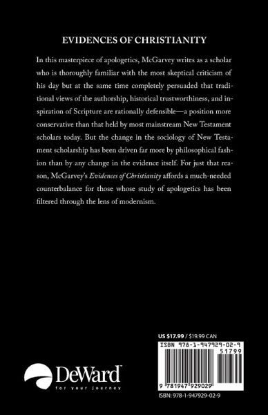 In this masterpiece of apologetics, McGarvey writes as a scholar who is thoroughly familiar with the most skeptical criticism of his day but at the same time completely persuaded that traditional views of the authorship, historical trustworthiness, and inspiration of Scripture are rationally defensible-a position more conservative than that held by most mainstream New Testament scholars today. But the change in the sociology of New Testament scholarship has been driven far more by philosophical fashion than by any change in the evidence itself. For just that reason, McGarvey's Evidences of Christianity affords a much-needed counterbalance for those whose study of apologetics has been filtered through the lens of modernism.