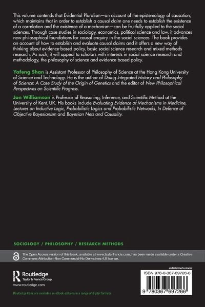 This volume contends that Evidential Pluralism-an account of the epistemology of causation, which maintains that in order to establish a causal claim one needs to establish the existence of a correlation and the existence of a mechanism-can be fruitfully applied to the social sciences. Through case studies in sociology, economics, political science and law, it advances new philosophical foundations for causal enquiry in the social sciences. The book provides an account of how to establish and evaluate causal claims and it offers a new way of thinking about evidence-based policy, basic social science research and mixed methods research. As such, it will appeal to scholars with interests in social science research and methodology, the philosophy of science and evidence-based policy.
