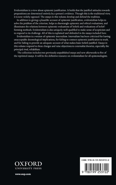 Evidentialism is a theory of knowledge whose essence is the traditional idea that the justification of factual knowledge is entirely a matter of evidence. Earl Conee and Richard Feldman present the definitive exposition and defence of this much-contested theory. They argue that evidentialism is an asset virtually everywhere in epistemology, from getting started legitimately to refuting skepticism. The volume collects the authors' renowned work on the topic and adds substantial new material, making it the prime resource in evidentialism for all epistemologists.