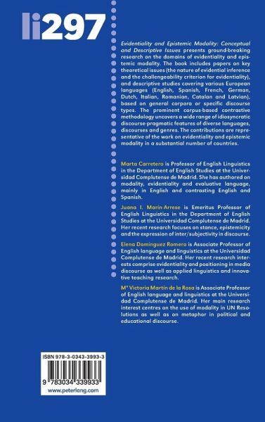Evidentiality and Epistemic Modality: Conceptual and Descriptive Issues presents ground-breaking research on the domains of evidentiality and epistemic modality. The book includes papers on key theoretical issues (the nature of evidential inference and the challengeability criterion for evidentiality), and descriptive studies covering various European languages (English, Spanish, French, German, Dutch, Italian, Romanian, Catalan and Latvian), based on general corpora or specific discourse types. The prominent corpus-based contrastive methodology uncovers a wide range of idiosyncratic discourse-pragmatic features of diverse languages, discourses and genres. The contributions are representative of the work on evidentiality and epistemic modality in a substantial number of countries.