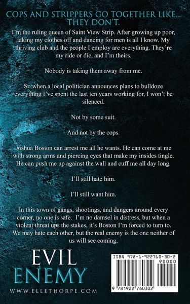 A male/female romance set in the Saint View world. No prior knowledge of the world is needed to start this hot new series. I'm the ruling queen of Saint View Strip. After growing up poor, taking my clothes off and dancing for men is all I know. My thriving club and the people I employ are everything. They're my ride or die, and I'm theirs. Nobody is taking them away from me. So when a local politician announces plans to bulldoze everything I've spent the last ten years working for, I won't be silenced. Not by some suit. And not by the cops. Joshua Boston can arrest me all he wants. He can come at me with strong arms and piercing eyes that make my insides tingle. He can push me up against the wall and cuff me all day long. I'll still hate him. I'll still want him. In this town of gangs, shootings, and dangers around every corner, no one is safe. I'm no damsel in distress, but when a violent threat ups the stakes, it's Boston I'm forced to turn to. We may hate each other, but the real enemy is the one neither of us will see coming. Evil Enemy is a dark romance that may have triggers for some readers. It was first published in the Hate to Want You Anthology.