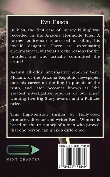 In 1953, the first case of 'mercy killing' was recorded in the Arizona Homicide Files. A former policeman is accused of killing his invalid daughter. There are extenuating circumstances, but what are the reasons for the murder, and who actually committed the crime? Against all odds, investigative reporter Gene McLain, of the Arizona Republic newspaper, puts his career on the line in pursuit of the truth, and later becomes known as "the greatest investigative reporter of our time," winning five Big Story awards and a Pulitzer prize. This high-tension thriller by Hollywood producer, director and writer Rena Winters is based on the true story of a man who proved that one person can make a difference.