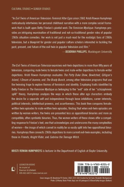 The Evil Twins of American Television examines evil-twin depictions in over fifty years of television. Employing the "schizophrenic split" theory of Betty Friedan, Humphreys analyzes the ways in which these alter ego characters embody the desire for a separate self and independence.