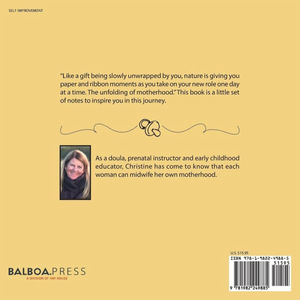 "Like a gift being slowly unwrapped by you, nature is giving you paper and ribbon moments as you take on your new role one day at a time. The unfolding of motherhood." This book is a little set of notes to inspire you in this journey.