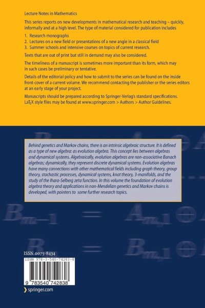 "The book introduces a new class of nonassociative algebras, called evolution algebras, and discusses in detail many applications of evolution algebras in stochastic processes and genetics. ... The book under review is suitable both for graduate students and researchers with interest in the theoretical biology, genetics, Markov process, graph theory, and nonassociative algebras and their applications. The text contains a clear, detailed and self-contained exposition of evolution algebras."(Fouad Zitan, Zentralblatt MATH, Vol. 1136 (14), 2008)