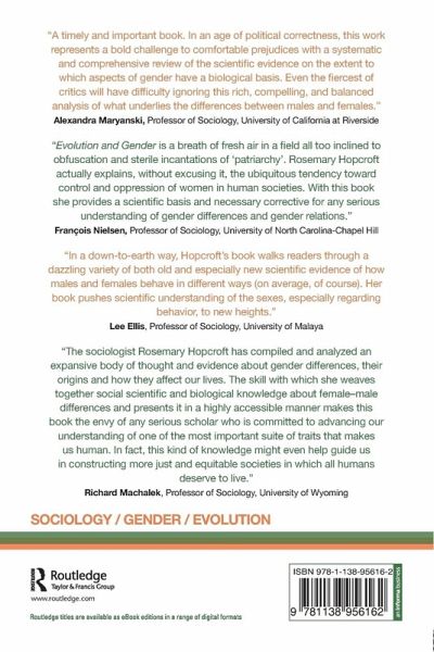 Part I: Introduction Chapter 1: Evolutionary theory and the Sociology of Gender- A bad beginning Part II: Sex Differences in Evolved Mating Strategies Chapter 2: Gender and evolution Chapter 3: Women's evolved long term mating strategies Chapter 4: Men's evolved long term mating strategies Chapter 5: What is beauty? Why do we want it? Chapter 6: Sex differences in short term sexual strategies Part III. Women and Men Chapter 7: Evolutionary origins of patriarchy: Societal control of women through the ages Chapter 8: Physiological differences between the sexes Chapter 9: Cognitive differences between the sexes Chapter 10: An evolutionary view of the reproductive lifecourse of women Chapter 11: Sex differences in aggression and criminality Chapter 12: Sex differences in status striving Chapter 13: Gender and emotion Part IV. Implications of Sex Differences Chapter 14: Parental strategies: Differences by child's gender Chapter 15: Boys and girls in school Chapter 16: Conflict between the sexes Chapter 17: But can they talk it out? Problems of communication Chapter 18: Conclusion