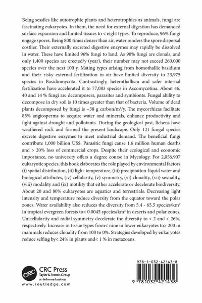 General Introduction. Spatial Distribution. Fungi: Modes of Life. Acquisition of Micronutrients. Mycology: Teaching Degrees. Clonal Multiplication. Sex Mating Type Sexuality. Gametangia Gametogenesis. Sporogenesis Quantity Dispersal. Sex Determination Pheromones. Lichens. Past: Fungal Evolution. Present: Desiccation and Dormancy. Future: Climate Change. Eukaryotes: Species Diversity.