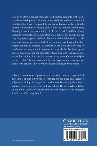 This book offers a radical challenge to all existing accounts of the common law's development. Contrary to received jurisprudential wisdom, it maintains there is no grand theory which will explain satisfactorily the dynamic interactions of change and stability in the common law's history. Offering fresh and original readings of Charles Darwin's and Hans-Georg Gadamer's works, the book demonstrates that law is a rhetorical activity that can only be properly appreciated in its historical and political context. It reveals that, like life, law is an organic process and that common law is a perpetual work-in-progress.