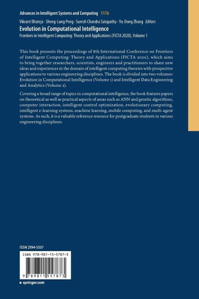 This book presents the proceedings of 8th International Conference on Frontiers of Intelligent Computing: Theory and Applications (FICTA 2020), which aims to bring together researchers, scientists, engineers and practitioners to share new ideas and experiences in the domain of intelligent computing theories with prospective applications to various engineering disciplines. The book is divided into two volumes: Evolution in Computational Intelligence (Volume 1) and Intelligent Data Engineering and Analytics (Volume 2). Covering a broad range of topics in computational intelligence, the book features papers on theoretical as well as practical aspects of areas such as ANN and genetic algorithms, computer interaction, intelligent control optimization, evolutionary computing, intelligent e-learning systems, machine learning, mobile computing, and multi-agent systems. As such, it is a valuable reference resource for postgraduate students in various engineering disciplines.