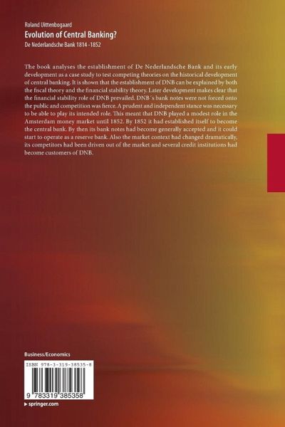 The book analyses the establishment of De Nederlandsche Bank and its early development as a case study to test competing theories on the historical development of central banking. It is shown that the establishment of DNB can be explained by both the fiscal theory and the financial stability theory. Later development makes clear that the financial stability role of DNB prevailed. DNB´s bank notes were not forced onto the public and competition was fierce. A prudent and independent stance was necessary to be able to play its intended role. This meant that DNB played a modest role in the Amsterdam money market until 1852. By 1852 it had established itself to become the central bank. By then its bank notes had become generally accepted and it could start to operate as a reserve bank. Also the market context had changed dramatically, its competitors had been driven out of the market and several credit institutions had become customers of DNB.