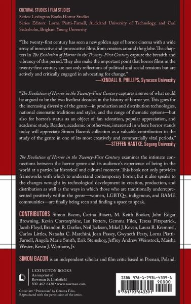The Evolution of Horror in the Twenty-First Century explores the many aspects of the horror genre across thematics and media in the 2020s. Consisting of 21 original essays by experts in the field, this book examines how horror reveals the anxieties around our current cultural moment and how that might develop in the future.