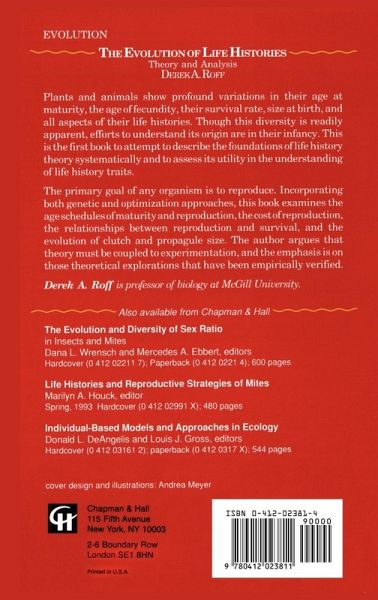 The text is illustrated and closes with a list of over 1,600 references and an index. Biological Abstracts; ...Roff's treatment is truly synthetic; he integrates topics like parental care, male reproductive tactics, migratory syndromes, and egg dispersion patterns firmly and thoughtfully into a unified framewrok of life-history evolution...a treatise on life-history evolution that is comprehensive and synthetic, integrating a wide diversity of theoretical and empirical literature... - Journal of Evolutionary Biology; ...a superb book. The fact that it is a single authored treatise is remarkable in itself... not only an extraordinary piece of scholarship but an essential addition to any ecologically minded scientist's personal library...extremely well organised with clear chapter sub-divisions, well thought out tables and excellent use is made of figures... an excellent book and should appeal to scientists interested in ecological and evolutionary processes at every level from advanced undergraduate upwards. The very reasonable price means that there is really no excuse why this book should not grace a great many personal library shelves and it should be included in any university library catalogue as a matter of course. - Bulletin of Entomological Research; This book should stimulate and guide miuch future life history study because it pulls together and organizes the present forest of life history work. - Ecology; The text is illustrated and closes with a list of over 1,600 references and an index.Biological Abstracts; ...Roff's treatment is truly synthetic; he integrates topics like parental care, male reproductive tactics, migratory syndromes, and egg dispersion patterns firmly and thoughtfully into a unified framewrok of life-history evolution...a treatise on life-history evolution that is comprehensive and synthetic, integrating a wide diversity of theoretical and empirical literature... - Journal of Evolutionary Biology; ...a superb book. The fact that it is a single authored treatise is remarkable in itself... not only an extraordinary piece of scholarship but an essential addition to any ecologically minded scientist's personal library...extremely well organised with clear chapter sub-divisions, well thought out tables and excellent use is made of figures... an excellent book and should appeal to scientists interested in ecological and evolutionary processes at every level from advanced undergraduate upwards. The very reasonable price means that there is really no excuse why this book should not grace a great many personal library shelves and it should be included in any university library catalogue as a matter of course. - Bulletin of Entomological Research; This book should stimulate and guide miuch future life history study because it pulls together and organizes the present forest of life history work. - Ecology; The text is illustrated and closes with a list of over 1,600 references and an index. Biological Abstracts; ...Roff's treatment is truly synthetic; he integrates topics like parental care, male reproductive tactics, migratory syndromes, and egg dispersion patterns firmly and thoughtfully into a unified framewrok of life-history evolution...a treatise on life-history evolution that is comprehensive and synthetic, integrating a wide diversity of theoretical and empirical literature... - Journal of Evolutionary Biology; This book should stimulate and guide miuch future life history study because it pulls together and organizes the present forest of life history work. - Ecology; The text is illustrated and closes with a list of over 1,600 references and an index. - Biological Abstracts; The text is illustrated and closes with a list of over 1,600 references and an index - Biological Abstracts; ...a superb book. The fact that it is a single authored treatise is remarkable in itself... not only an extraordinary piece of scholarship but an essential addition to any ecologically minded scientist's personal library...extremely well