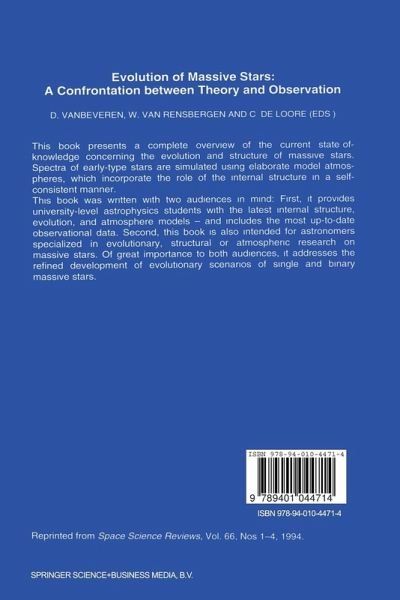 Massive stars: setting the stage.- I. Number and Distribution of Massive Stars.- The massive star distribution in the Galaxy and the Magellanic Clouds.- Massive star distribution in external galaxies and starburst region.- Dissection of 30 Doradus and a discussion of the Magellanic Cloud OB-associations.- Blue and red supergiants and the age structure of the NGC 330 region.- Stars in young clusters in the Magellanic Clouds.- The population of massive stars in R136 from HST/FOC UV observations.- Spectral synthesis of spectral populations using Balmer lines.- The stellar content of the Orion OB1 association.- II. Massive Star Atmospheres and Stellar Winds.- Observations of the atmospheres and winds of O-stars, LBV's and Wolf-Rayet stars.- Radiation driven winds of hot stars: theory of O-star atmospheres as a spectral tool.- The chemical composition of B-supergiant atmospheres.- Intrinsic parameters of massive OB-stars.- Line blanketing by iron group elements in non-LTE model atmospheres of hot stars.- A comparison between observed and predicted mass loss rates and wind momentum of O stars.- LTE and NLTE abundances in A supergiants: a test of their evolutionary status.- A spectroscopic analysis of B-stars in the SMC cluster NGC 330.- Hydrodynamic atmosphere models for hot luminous stars II. Method and improvements over unified models.- Hubble space telescope spectroscopy of massive hot stars in the Magellanic Clouds and M31.- Stellar winds of massive stars in M31.- O-star winds in the Magellanic Clouds and the Milky Way.- On the relation between the mass loss rate and the stellar parameters of OB-type stars.- Wind asymmetries in massive stars.- NLTE analysis of hot binaries.- Effective temperatures and surface gravities of early type stars.- The atmospheric composition,extinction and luminosity of the LBV star R71.- The variability of Eta Car: a tool for the LBV phenomenon.- The nature of the luminous blue variable AG Car.- The evolutionary status of Eta Car based on historical and modern optical and infrared photometry.- The gradual acceleration of the outflow of VX Sagittari; a stellar evolution effect?.- The complex H-alpha profile of the hypergiant HR 8752 during 1970-1992.- Spectral analysis of Wolf-Rayet stars: theory, results, conclusions.- Line-blanketed non-LTE atmosphere models for Wolf-Rayet stars.- The fundamental parameters of the central stars of eight WR ring nebulae.- Tailored analysis of 24 galactic WN stars.- Oxygen and carbon abundances for the WO stars.- HD190918: arbiter between models for Wolf-Rayet stars.- III. Structure and Evolution of Massive Srars.- Structure and evolution of massive stars: mixing processes and stellar evolution.- Overshooting from convective cores: theory and numerical simulation.- Massive close binaries. observational characteristics.- Doppler tomography of O-type binaries; the physical properties of seven systems.- Evolution of massive close binaries.- Massive single star evolution: comparison with observations.- Presupernova evolution of the most massive stars.- Properties of massive star evolution.- Nucleosynthesis in massive stars.- Results of evolutionary computations of primaries of close binaries with different initial composition.- The mass and helium discrepancy in massive stars: the case Vela X-1.- On the evolution of secondary components in massive close binary systems.- Double-zone model with diffusive mixing and the mass and helium discrepancies in OB stars.- The impact of semi-convection and overshooting on the surface abundances in massive stars.- Improved bolometriccorrections for WR stars.- Wolf-Rayet stars in starbursts.- A study of the SMC cluster NGC330.- The evolution of massive stars to explosion.- SN1987A and SN1993J: testing stellar evolution theory.- Chemical and photometric evolution of elliptical galaxies.- A model for the chemical evolution of the solar neighborhood using metallicity dependent yields.- Poster list.- Summary.