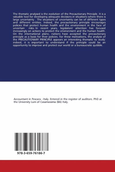 The thematic analysed is the evolution of the Precautionary Principle. It is a valuable tool for developing adequate decisions in situations where there is large uncertainty . The situations of uncertainty can be of different types and different entities. Indeed, the precautionary principle éncourages policies that protect human health and the environment in the face of uncertain risks. In recent years, legislators' attention has focused increasingly on actions to protect the environment and the human health. On the international plane, nations have accepted the precautionary principle as a basis for their policies. For these motivations, the analysis of the PRECAUTIONARY PRINCIPLE appears an interesting thematic to study: indeed, it is important to understand if the principle could be an opportunity to improve and protect our world or a bureaucratic quibble.