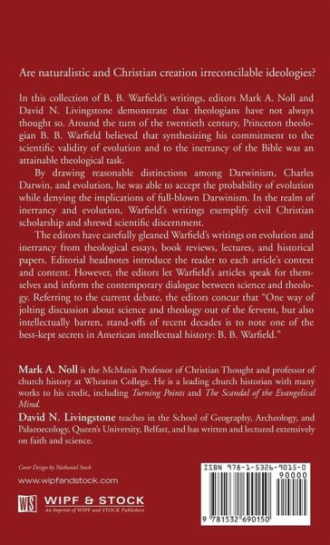 Are naturalistic and Christian creation irreconcilable ideologies? In this collection of B. B. Warfield's writings, editors Mark A. Noll and David N. Livingstone demonstrate that theologians have not always thought so. Around the turn of the twentieth century, Princeton theologian B. B. Warfield believed that synthesizing his commitment to the scientific validity of evolution and to the inerrancy of the Bible was an attainable theological task. By drawing reasonable distinctions among Darwinism, Charles Darwin, and evolution, he was able to accept the probability of evolution while denying the implications of full-blown Darwinism. In the realm of inerrancy and evolution, Warfield's writings exemplify civil Christian scholarship and shrewd scientific discernment. The editors have carefully gleaned Warfield's writings on evolution and inerrancy from theological essays, book reviews, lectures, and historical papers. Editorial headnotes introduce the reader to each article's context and content. However, the editors let Warfield's articles speak for themselves and inform the contemporary dialogue between science and theology. Referring to the current debate, the editors concur that ""One way of jolting discussion about science and theology out of the fervent, but also intellectually barren stand-offs of recent decades, is to note one of the best-kept secrets in American intellectual history: B. B. Warfield.""