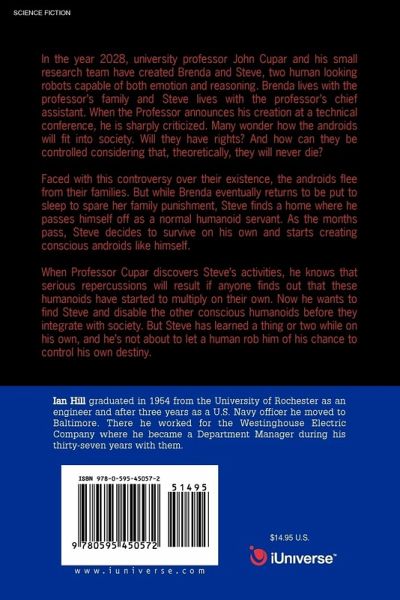 In the year 2028, university professor John Cupar and his small research team have created Brenda and Steve, two human looking robots capable of both emotion and reasoning. Brenda lives with the professor's family and Steve lives with the professor's chief assistant. When the Professor announces his creation at a technical conference, he is sharply criticized. Many wonder how the androids will fit into society. Will they have rights? And how can they be controlled considering that, theoretically, they will never die? Faced with this controversy over their existence, the androids flee from their families. But while Brenda eventually returns to be put to sleep to spare her family punishment, Steve finds a home where he passes himself off as a normal humanoid servant. As the months pass, Steve decides to survive on his own and starts creating conscious androids like himself. When Professor Cupar discovers Steve's activities, he knows that serious repercussions will result if anyone finds out that these humanoids have started to multiply on their own. Now he wants to find Steve and disable the other conscious humanoids before they integrate with society. But Steve has learned a thing or two while on his own, and he's not about to let a human rob him of his chance to control his own destiny.