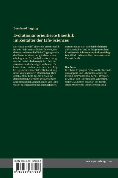 Der Autor entwirft einerseits eine Bioethik für den nichtmenschlichen Bereich, die die naturwissenschaftliche Zugangsweise der Evolutionsforschung insbesondere ethologischer Art (Verhaltensforschung) mit der molekularbiologischen Rekonstruktion des Lebendigen verbindet. Er konkretisiert andererseits den Gerechtigkeitsgrundsatz einer Gleichbehandlung unter vergleichbaren Umständen. Dies geschieht mithilfe des empirisch modellierbaren Kriteriums anwachsender Komplexität der Möglichkeiten von Lebewesen zu intelligentem Sozialverhalten. Damit setzt er sich von den bisherigen utilitaristischen und…mehr