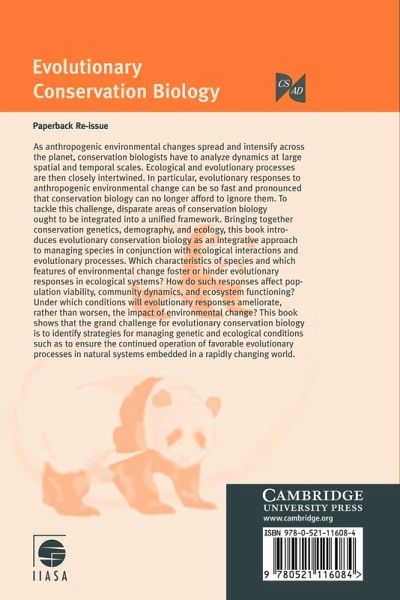 As anthropogenic environmental changes spread and intensify across the planet, conservation biologists have to analyze dynamics at large spatial and temporal scales. Ecological and evolutionary processes are then closely intertwined. In particular, evolutionary responses to anthropogenic environmental change can be so fast and pronounced that conservation biology can no longer afford to ignore them. To tackle this challenge, areas of conservation biology that are disparate ought to be integrated into a unified framework. Bringing together conservation genetics, demography, and ecology, this book introduces evolutionary conservation biology as an integrative approach to managing species in conjunction with ecological interactions and evolutionary processes. Which characteristics of species and which features of environmental change foster or hinder evolutionary responses in ecological systems? How do such responses affect population viability, community dynamics, and ecosystem functioning? Under which conditions will evolutionary responses ameliorate, rather than worsen, the impact of environmental change?