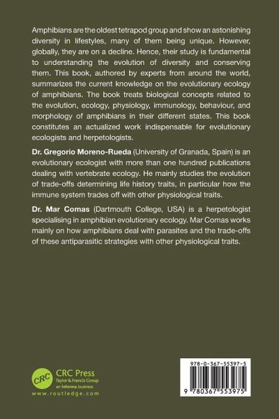 The book treats biological concepts related to the evolution, ecology, physiology, immunology, behaviour, and morphology of amphibians in their different states. This book constitutes an actualized work indispensable for evolutionary ecologists and herpetologists.