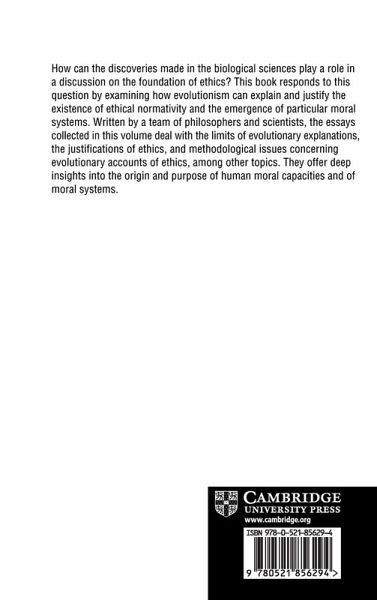 How can the discoveries made in the biological sciences play a role in a discussion on the foundation of ethics? This book responds to this question by examining how evolutionism can explain and justify the existence of ethical normativity and the emergence of particular moral systems. Written by a team of philosophers and scientists, the essays collected in this volume deal with the limits of evolutionary explanations, the justifications of ethics, and methodological issues concerning evolutionary accounts of ethics, among other topics. They offer deep insights into the origin and purpose of human moral capacities and of moral systems.