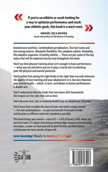 "If you're an athlete or coach looking for a way to optimize performance and reach your athletic goals, this book is a must-read."Manuel Sola Arjona(Coach and author of The Nature of Training) *** Evolutionary nutrition. Carbohydrate periodization. Two fuel tanks and two energy sources. Metabolic flexibility. The complete athlete. Variability. The adaptive organism. A healthy athlete... These are just some of the key topics that will be explored step by step throughout this book. You'll see that physical training alone isn't enough to boost performance-what you eat and when you eat it play a crucial role in unlocking your full physical and mental potential. You'll realize that eating the right foods at the right time not only enhances the quality of your training and your adaptations to it, but also improves your overall health-which, in turn, contributes to better performance. A double win. You'll understand why the foods that have been with humankind the longest are the ones that suit us best. You'll discover that, just as training should vary, so should your nutrition. You'll learn how to make the most of your two main energy sources-fat and carbohydrates-so you can benefit from both worlds and become as efficient and well-rounded as possible. This book brings you science-lots of it-a bit of theory, and, above all, practical tools. It's about translating cutting-edge research into everyday strategies, so you can fuel yourself to push further, perform better, and become the best version of yourself. Love learning! Ready to level up? Let¿s go!