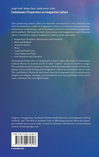 Part I: The Evolution of Imagination.- The Behaviorally Modern Human Imagination.- The Evolution of Imagination through Narratives and Belief.- Part II: Meta-Narratives.- Imagining the Gods.- The Evolution of Traits and Stories: Two Rival Templates for Self-Understanding.- Descent with Imagination: The Cultural Evolution of Traditional Narratives.- The Unimaginable Place in Nature: Literary Resistance to Darwinian Evolution.- Epic Communities and Cosmic Apprenticeship: Group-Belonging and Social Learning in Popular Science Books.- Part III: Aesthetics, Music, and the Plastic Arts.- Tapping the Imagination at the Dawn of Human Culture: Art, Brain and Evolutionary Pressures.- Evolutionary Constraints on Creativity in the Visual and Plastic Arts.- The Role of Aesthetic Style in Framing Cognitive Orientation Towards the Future.- The Evolution of Music: A Paradigm of Embodied Cognition.- The Influence of Image Salienceon Artistic Expression: Cross-Cultural Examples of Large Felid Predators.- Key Stimuli and Power Objects: Aesthetics and Humans' Inborn Sensibilities.- Part IV: Film, Media, and Performance.- Film and Coevolution: Kubrick's Movies as Modes of Religious Ritual.- Why Women Love Bromance: The Rise of Slash Fiction.- "Unbreakable, Incorruptible, Unyielding": Doom as an Agency Simulator.- Part V: Literature.- Adaptive Flights of Fancy: An Evolutionary Perspective on Speculative Fiction.- Narrative and Verse-and Comics.- Literary Representations of Parental Investment: Emotional Quandaries and Strategic Decisions.