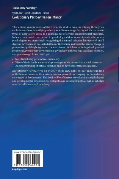 This unique volume is one of the first of its kind to examine infancy through an evolutionary lens, identifying infancy as a discrete stage during which particular types of adaptations arose as a consequence of certain environmental pressures. Infancy is a crucial time period in psychological development, and evolutionary psychologists are increasingly recognizing that natural selection has operated on all stages of development, not just adulthood. The volume addresses this crucial change in perspective by highlighting research across diverse disciplines including developmental psychology, evolutionary developmental psychology, anthropology, sociology, nutrition, and primatology. Chapters are grouped into four sections:
