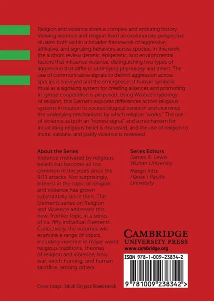 Religion and violence share a complex and enduring history. Viewing violence and religion from an evolutionary perspective situates both within a broader framework of aggressive, affiliative, and signaling behaviors across species. This Element explores differences across religious systems in relation to socioecological variation.