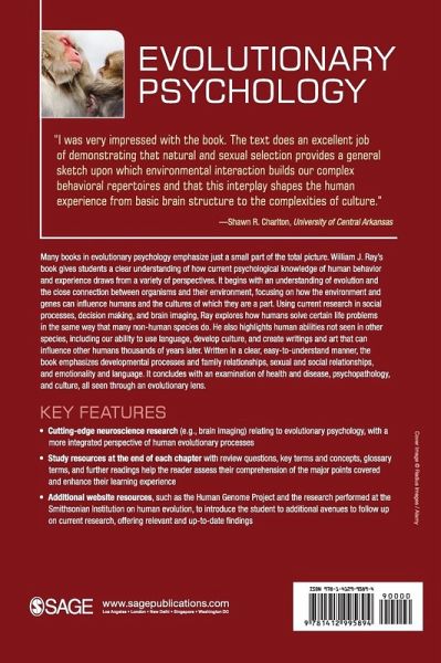 Many books in evolutionary psychology emphasize just a small part of the total picture. Evolutionary Psychology gives students a clear understanding of how current psychological knowledge of human behavior and experience draws from a variety of perspectives. It begins with an understanding of evolution and the close connection between organisms and their environment. It provides the student the basics necessary to see how the environment and the turning on and off of genes can influence humans and the cultures in which they live. The book shows that we solve certain problems of life as many species have done for years. It also shows a glimpse of human abilities not seen in other species. We use language. We purposely teach our children. We build large cities that survive long after a single generation. We create cultures that through their writings and art can influence other humans thousands of years later. Current research in social processes, decision making, and brain imaging is presented in a clear manner throughout the book. The book emphasizes developmental processes and family relationships, sexual and social relationships, as well as emotionality and language. The book concludes by applying an evolutionary understanding approach to examine the areas of health and disease, psychopathology, and culture.