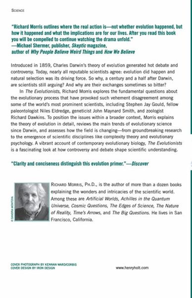 Introduced in 1859, Charles Darwin's theory of evolution generated hot debate and controversy. Today nearly all reputable scientists agree: evolution did happen and natural selection was its main driving force. Yet a century and a half after Darwin, the theory of evolution is still being fought over with a ferocity that has rarely been equaled in the annals of science. What are scientists arguing about? And why are their exchanges sometimes so bitter? In The Evolutionists, Richard Morris vividly portrays the controversies that rage today in the field of evolutionary biology. With a clear and unbiased eye, he explores the fundamental questions about the evolutionary process that have provoked such vehement disagreement among some of the world's most prominent scientists, including Stephen Jay Gould, fellow paleontologist Niles Eldredge, geneticist John Maynard Smith, and zoologist Richard Dawkins. A vibrant account of contemporary evolutionary biology, The Evolutionists is a fascinating look at how controversy and debate shape the scientific process.