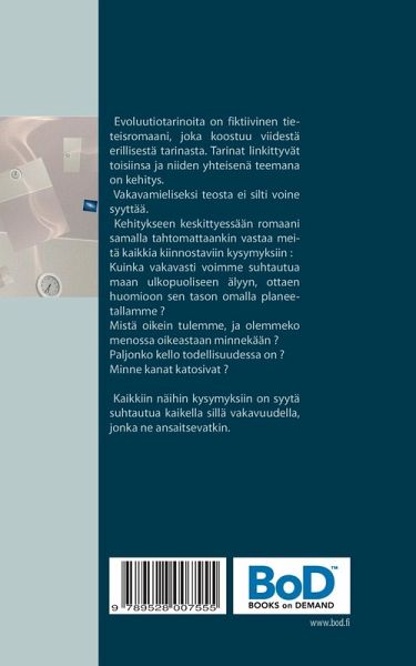 Evoluutiotarinoita on fiktiivinen tieteisromaani, joka koostuu viidestä erillisestä tarinasta. Tarinat linkittyvät toisiinsa ja niiden yhteisenä teemana on kehitys. Vakavamieliseksi teosta ei silti voine syyttää. Kehitykseen keskittyessään romaani samalla tahtomattaankin vastaa meitä kaikkia kiinnostaviin kysymyksiin : Kuinka vakavasti voimme suhtautua maan ulkopuoliseen älyyn, ottaen huomioon sen tason omalla planeetallamme ? Mistä oikein tulemme, ja olemmeko menossa oikeastaan minnekään ? Paljonko kello todellisuudessa on ? Minne kanat katosivat ? Kaikkiin näihin kysymyksiin on syytä suhtautua kaikella sillä vakavuudella, jonka ne ansaitsevatkin.
