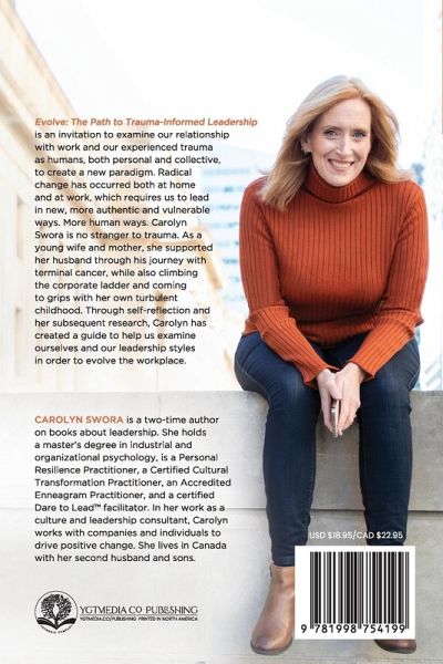 Let's be honest: leadership is broken. Evolve: The Path to Trauma-Informed Leadership is an invitation to examine our relationship with work and our experienced trauma as humans, both personal and collective, to create a new paradigm. The events of the past few years, including COVID-19, Black Lives Matter, environmental instability, and economic uncertainty have led to profound societal shifts. We are rethinking our priorities and beliefs, and importantly, how we exist in relation to others. Radical change has occurred both at home and at work, which requires us to lead in new, more authentic and vulnerable ways. More human ways. Carolyn Swora is no stranger to trauma. As a young wife and mother, she supported her husband through his journey with terminal cancer, while also climbing the corporate ladder and coming to grips with her own turbulent childhood. Through self-reflection and her subsequent research, Carolyn has created a guide to help us examine ourselves and our leadership styles in order to evolve the workplace. In Evolve, Carolyn Swora debunks the idea that being a trauma-informed leader means becoming a trauma therapist. Carolyn provides an accessible primer on a difficult but important topic that will, at the very least, reframe your definition of trauma, and at the best, inspire your leadership practice to even deeper levels." -Glain Roberts-McCabe Carolyn Swora is a two-time author on books about leadership. She holds a master's degree in industrial and organizational psychology is a Personal Resilience Practitioner, Certified Cultural Transformation Practitioner, Accredited Enneagram Practitioner and certified Dare to Lead(TM) facilitator. In her work as a culture and leadership consultant, Carolyn works with companies and individuals to drive positive change. She lives in Canada with her second husband and sons.