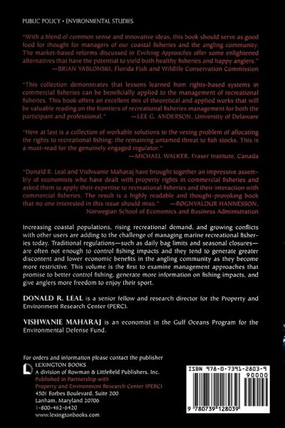 Each year, thirteen million anglers enjoy the sport of saltwater angling in the United States, generating an estimated $30 billion in sales and supporting nearly 350,000 jobs. Recreational saltwater fishing, however, can significantly impact species of concern-species overfished or experiencing overfishing. Traditional angling controls_bag and size limits and restricted seasons_have fallen short in controlling fishing impacts and reducing conflicts among fishing and non-fishing interests. Evolving Approaches to Managing Marine Recreational Fisheries offers ways of overcoming such problems while providing anglers and the recreational service industry greater regulatory flexibility to enjoy the fruits of sportfishing. It features fourteen internationally recognized fishery experts presenting the pros and cons of using individual fishing quotas (IFQs), game tags, and angler management organizations (AMOs) in managing marine recreational fisheries, presenting both theoretical and practical solutions to help move recreational fisheries management to a new and improved level.