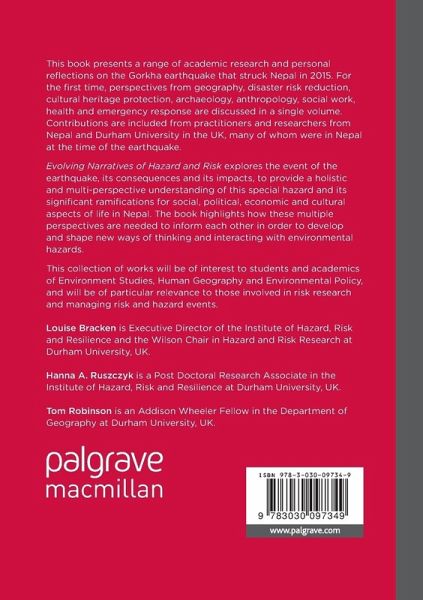 Evolving Narratives of Hazard and Risk explores the event of the earthquake, its consequences and its impacts, to provide a holistic and multi-perspective understanding of this special hazard and its significant ramifications for social, political, economic and cultural aspects of life in Nepal. The book highlights how these multiple perspectives are needed to inform each other in order to develop and shape new ways of thinking and interacting with environmental hazards.