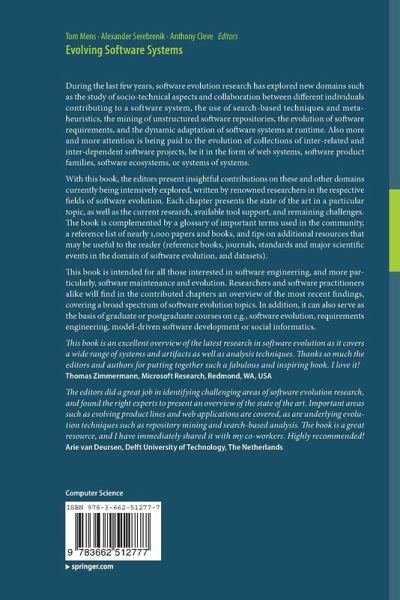 With this book, the editors present insightful contributions on these and other domains currently being intensively explored, written by renowned researchers in the respective fields of software evolution. Each chapter presents the state of the art in a particular topic, as well as the current research, available tool support and remaining challenges. The book is complemented by a glossary of important terms used in the community, a reference list of nearly 1,000 papers and books and tips on additional resources that may be useful to the reader (reference books, journals, standards and major scientific events in the domain of software evolution and datasets).